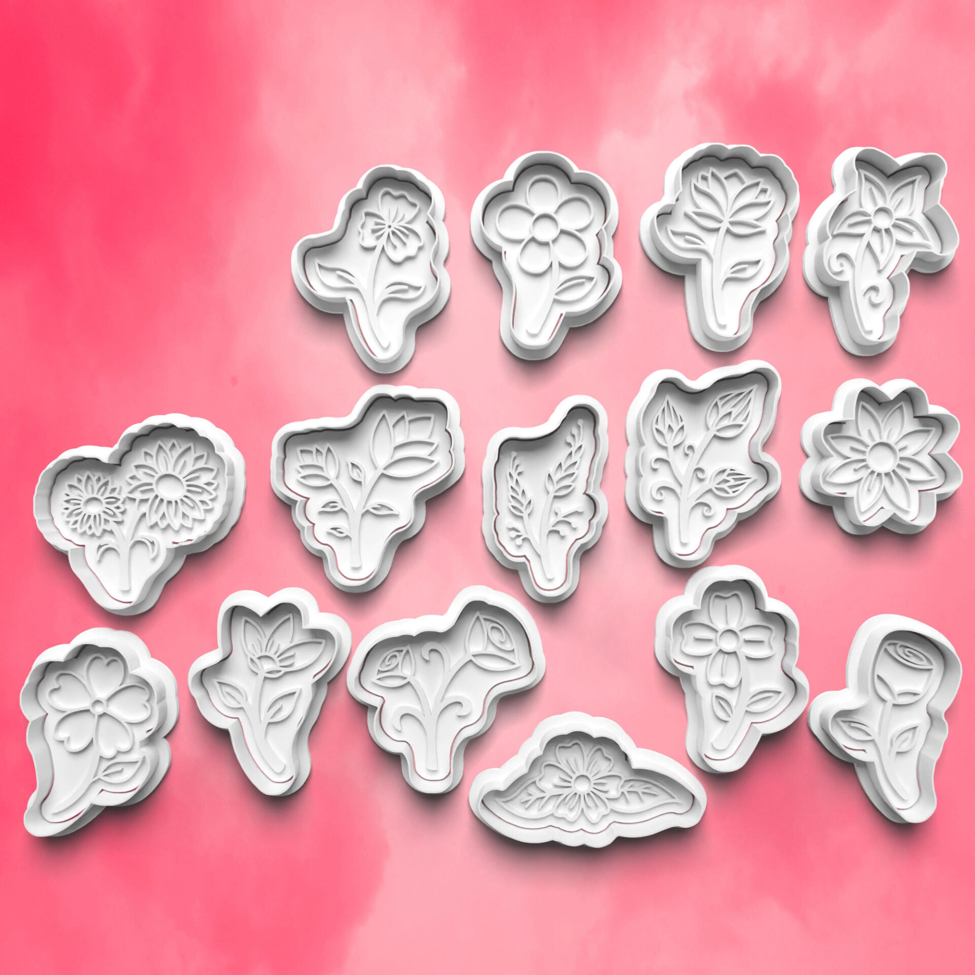 Kvety – Sada 15ks vykrajovačiek s pečiatkou