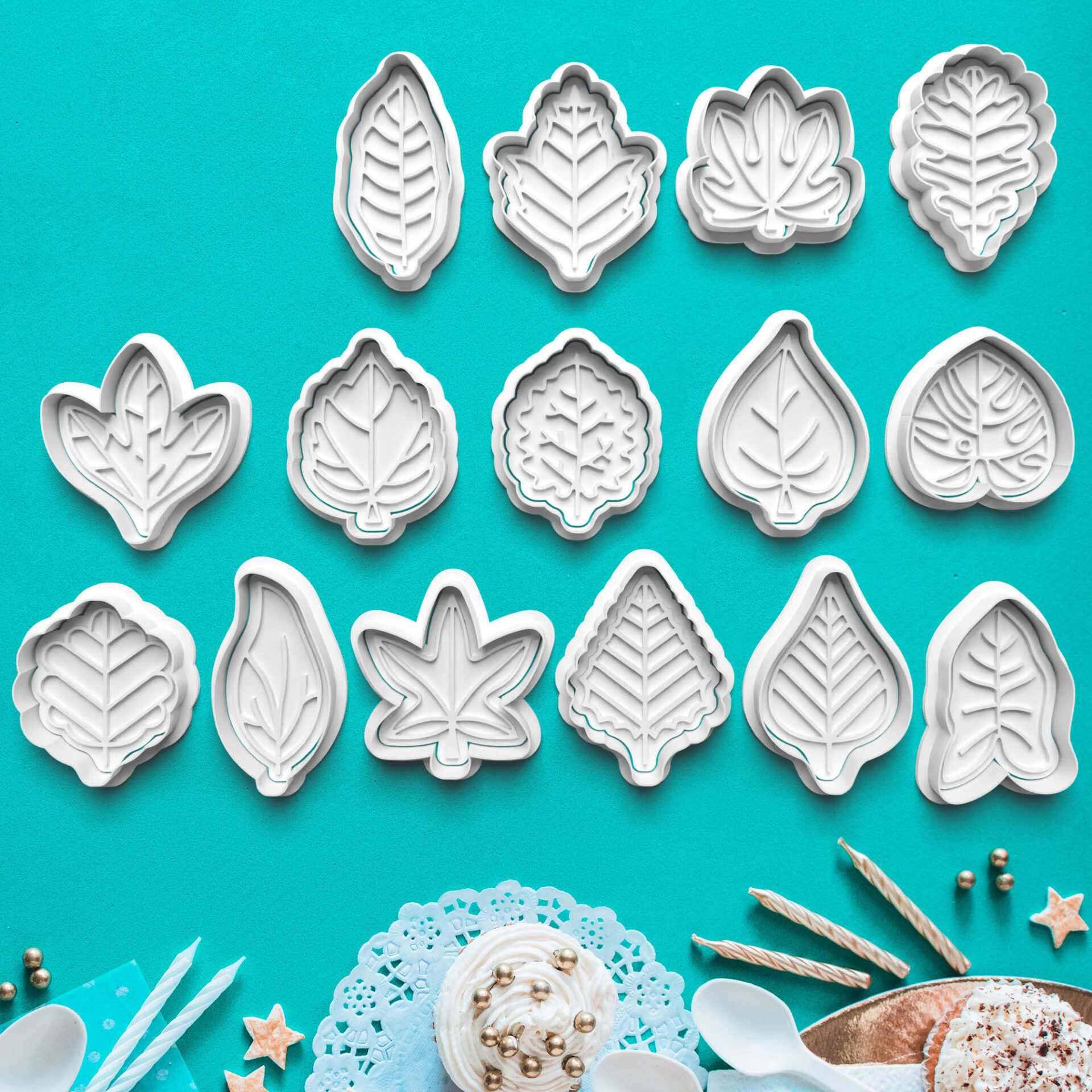 Vykrajovačky Listy sada 15ks vykrajovačiek s pečiatkou o rozmere cca: Dĺžka: 6-9 cm Šírka: 6-8 cm