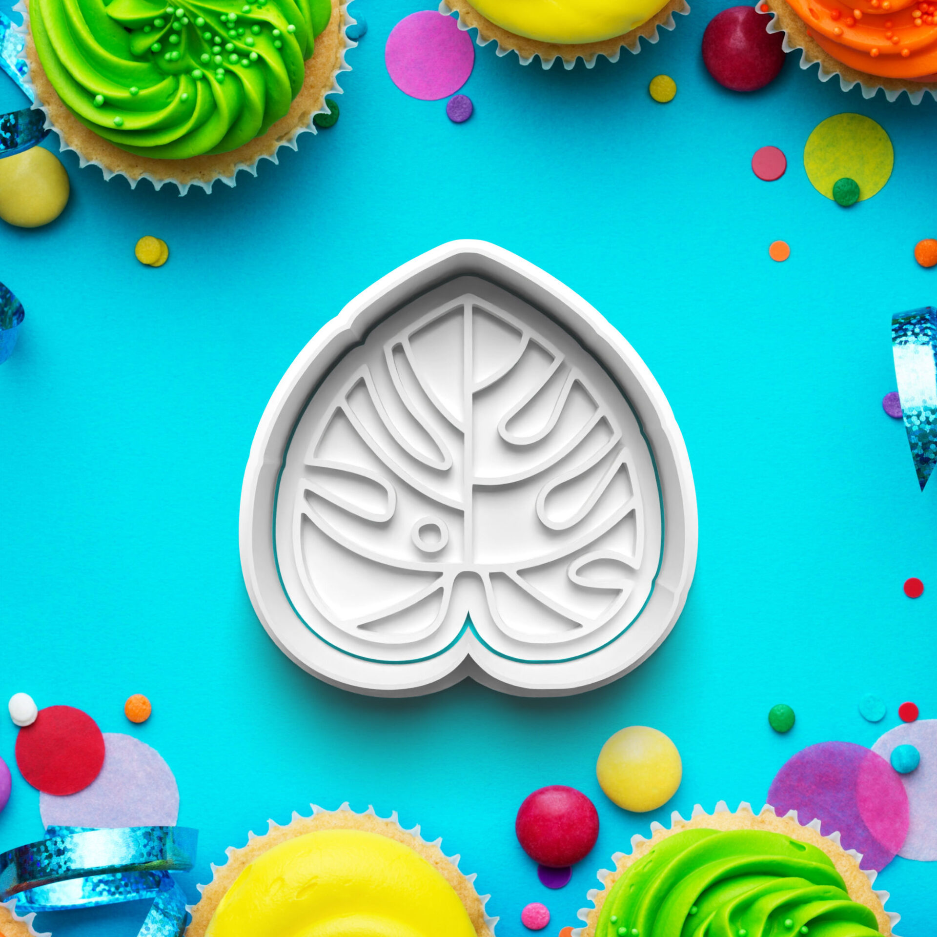 Vykrajovačka s pečiatkou v motíve od autora Cactus Cookies. Pečiatky majú držiak pre ľahšiu manipuláciu. Vykrajovač je minimálne 10 mm vysoký, pričom pečiatka na otlačovanie je 3 mm pod okrajom a má výšku 5mm. Vykrajovačky majú tiež zosilnený okraj, čo zabezpečuje lepšie krájanie a dlhšiu životnosť.