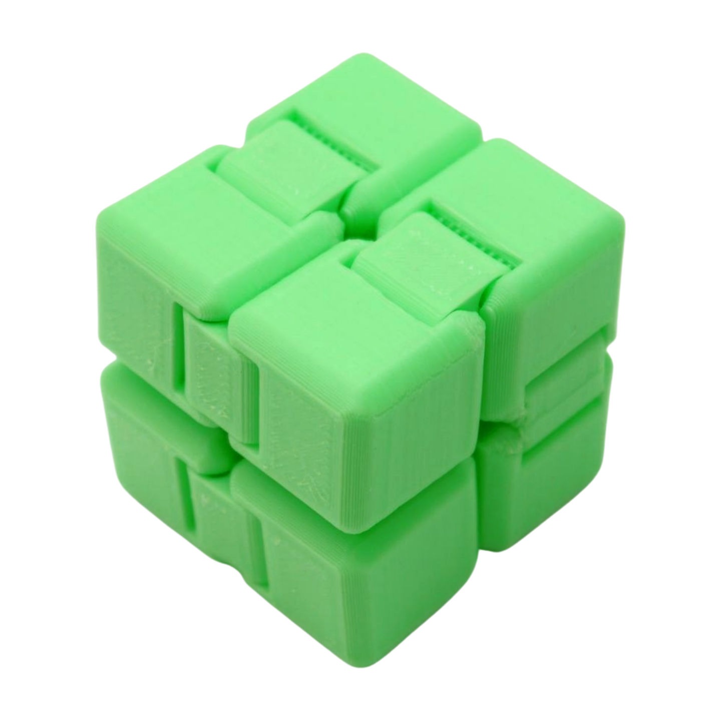 Nekonečná kocka pre deti (infinity cube) je fidget pomôcka zložená z ôsmich prepojených kociek. Pohybom prstov ju skladáš a otáčaš donekonečna – pohyb nemá začiatok ani koniec. Pomáha pri sústredení, rozvíja jemnú motoriku a poskytuje jednoduchú senzorickú stimuláciu rúk pri každodenných aktivitách.